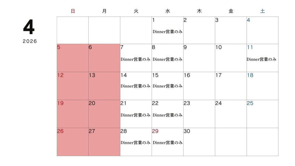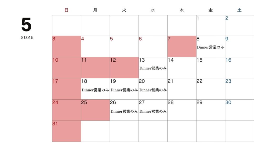 4月、5月の営業日程